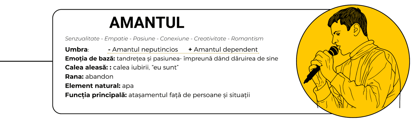 Unul dintre cele mai subestimate arhetipuri masculine, Amantul este sursa creativității, pasiunii, trăirii intense și a bucuriei de a fi prezent.