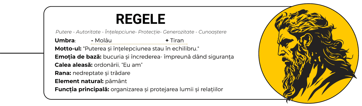 Astfel, arhetipul Regelui nu este despre controlul exterior, ci despre maestria interioară. Este chemarea de a deveni stăpân pe propriul regat – mintea ta, inima ta, relațiile tale, impactul tău în lume.