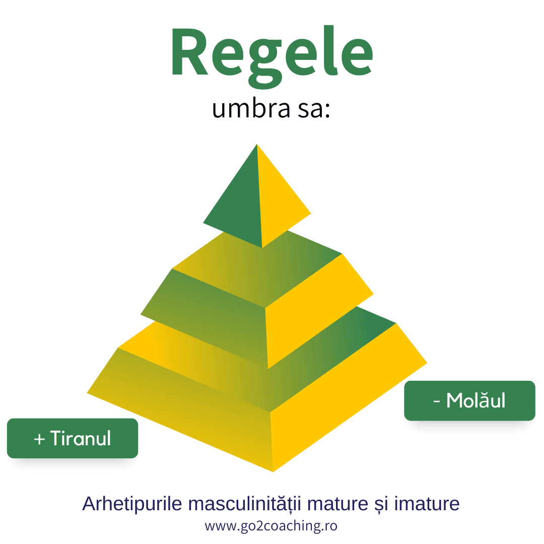 Deși Regele matur este un simbol al echilibrului, înțelepciunii și autorității conștiente, energia sa poate deveni distructivă atunci când nu este integrată sau trăită cu prezență. Umbrele acestui arhetip apar atunci când Regele este condus de frică, traumă, ego sau nesiguranță.