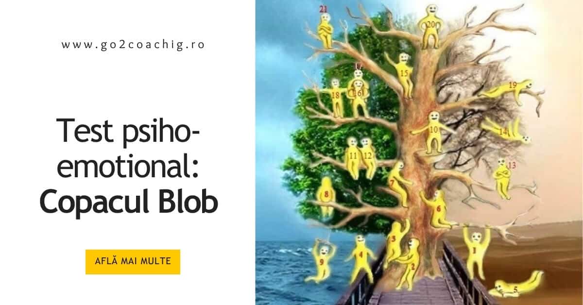 Copacul Blob este un desen cu mai multe personaje galbene („bloburi”), așezate în diferite poziții: unele urcă în copac, unele cad, unele stau singure, altele se țin de mână sau privesc de sus. Fiecare poziție exprimă o stare emoțională și, de multe ori, chiar felul în care te raportezi la un grup (familie, echipă, prieteni, comunitate).