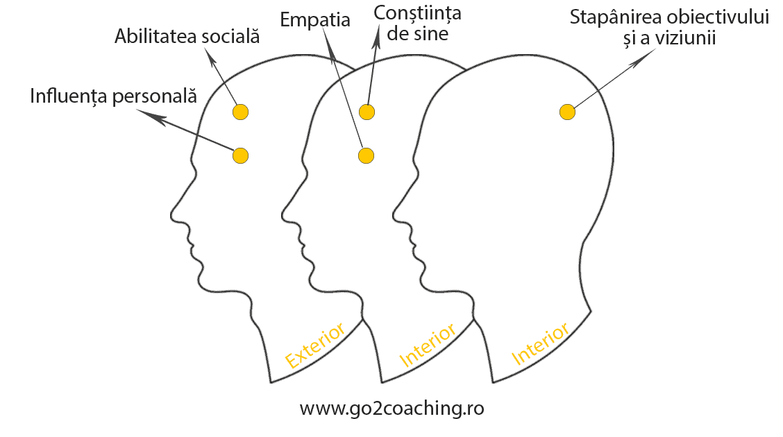 În modelul de mai sus, trei dintre competențele inteligenței emoționale au legătură cu lumea noastră interioară (cunoașterea de sine, empatia, stăpânirea obiectivelor și viziunii), iar celelalte două formează realitățile noastre cu lumea exterioară (abilitatea socială și influența socială). Toate aceste comportamente sunt legate între ele și fiecare se dezvoltă pe baza celui de lângă el. Cunoașterea și autocontrolul deschid ușile către inteligența emoțională.