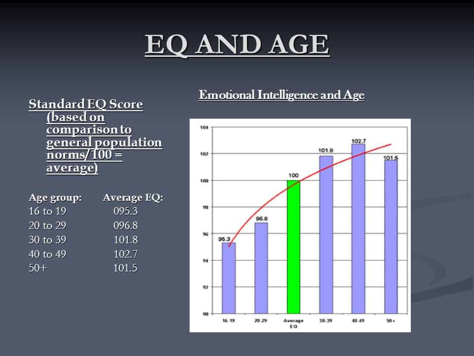 O altă diferență majoră dintre inteligența rațională și cea emoțională este că IQ este destul de rigid. El tinde să ajungă la o valoare ridicată pentru o persoană de 17 ani, rămâne constant în perioada vârstei adulte și începe să scadă spre vârsta a treia. Spre deosebire de aceasta EQ nu este la fel de rigid ea crește odată ce îmbătrânim și nu este neapărat surprinzător deoarece pe măsură ce îmbătrânim devenim mai înțelepți. Trăim și învățăm, iar unul dintre din lucrurile pe care le învățăm este acela de a îmbina sentimentele cu rațiune.