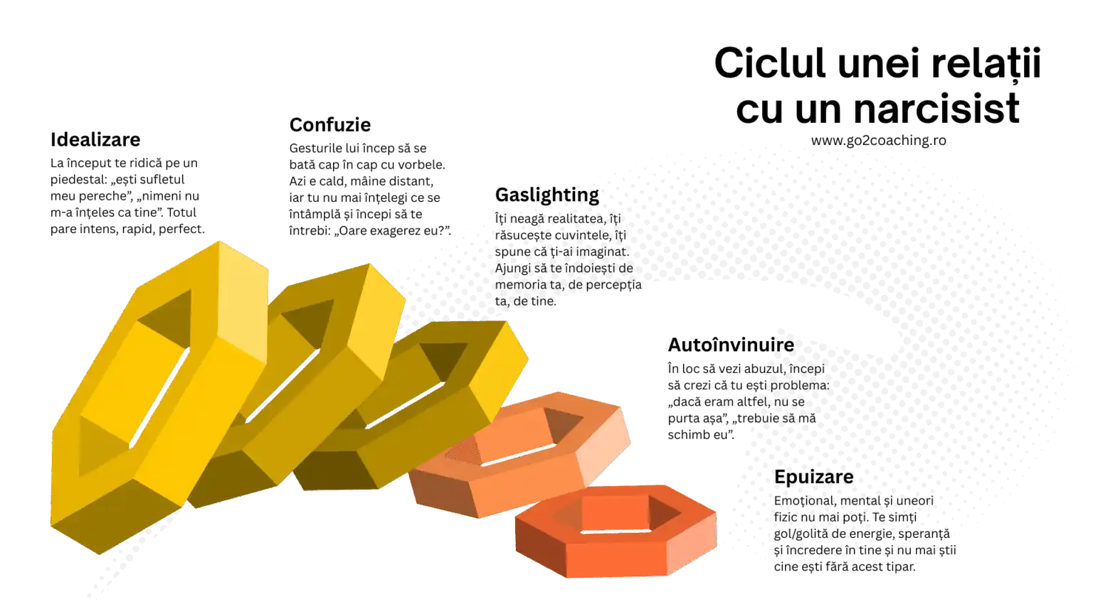Dacă simți că ești sau ai fost într-o relație cu un narcisist și nu mai știi ce e real și ce nu, o sesiune de coaching poate fi primul spațiu sigur în care să pui totul pe masă, fără judecată și fără presiunea de a lua o decizie imediat.