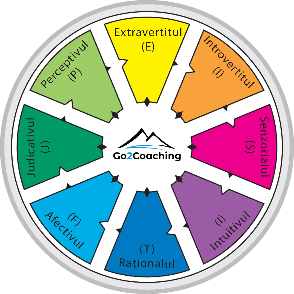 - Rațional/ Reflexiv (T) și Afectiv (F) – legate de procesul prin care luăm decizii și procesul prin care ajungem la concluzii și judecăți asupra lucrurilor.